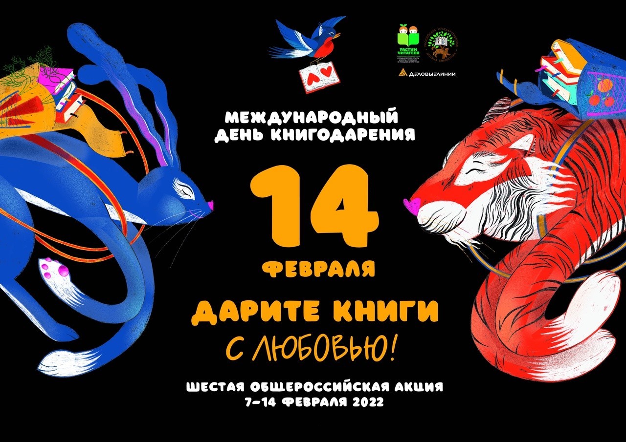 С 7 по 14 февраля 2022 года Ассоциация деятелей культуры, искусства и просвещения по приобщению детей к чтению «Растим читателя» проводит Шестую общероссийскую акцию «Дарите книги с любовью», приуроченную к Международному дню книгодарения.
