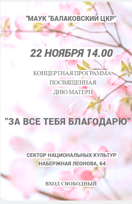Афиша В Секторе национальных культур Балакова пройдет концертная программа в честь Дня матери 21.11.2025 11:25 2421