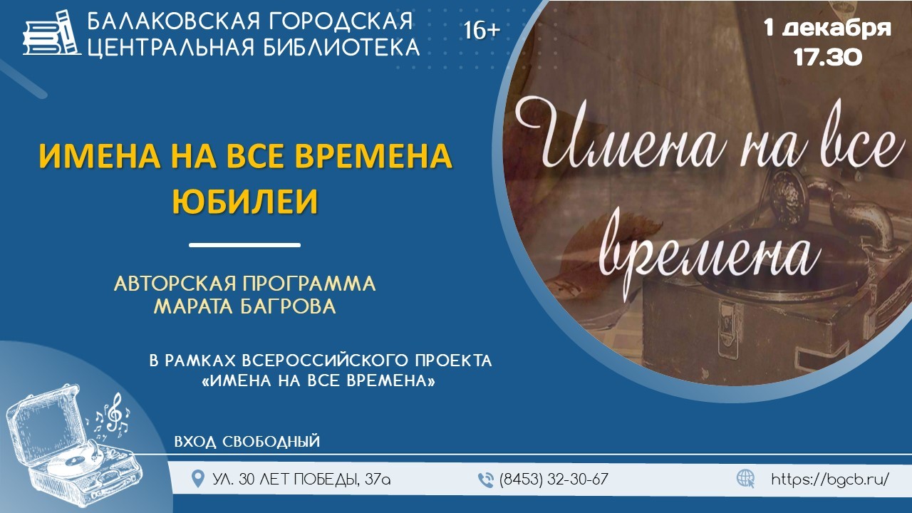 Афиша «Имена на все времена»: юбилей Элеоноры Беляевой и другие круглые даты. В Балаковской центральной библиотеке пройдет встреча с прекрасным 20.11.2025 14:50 2461