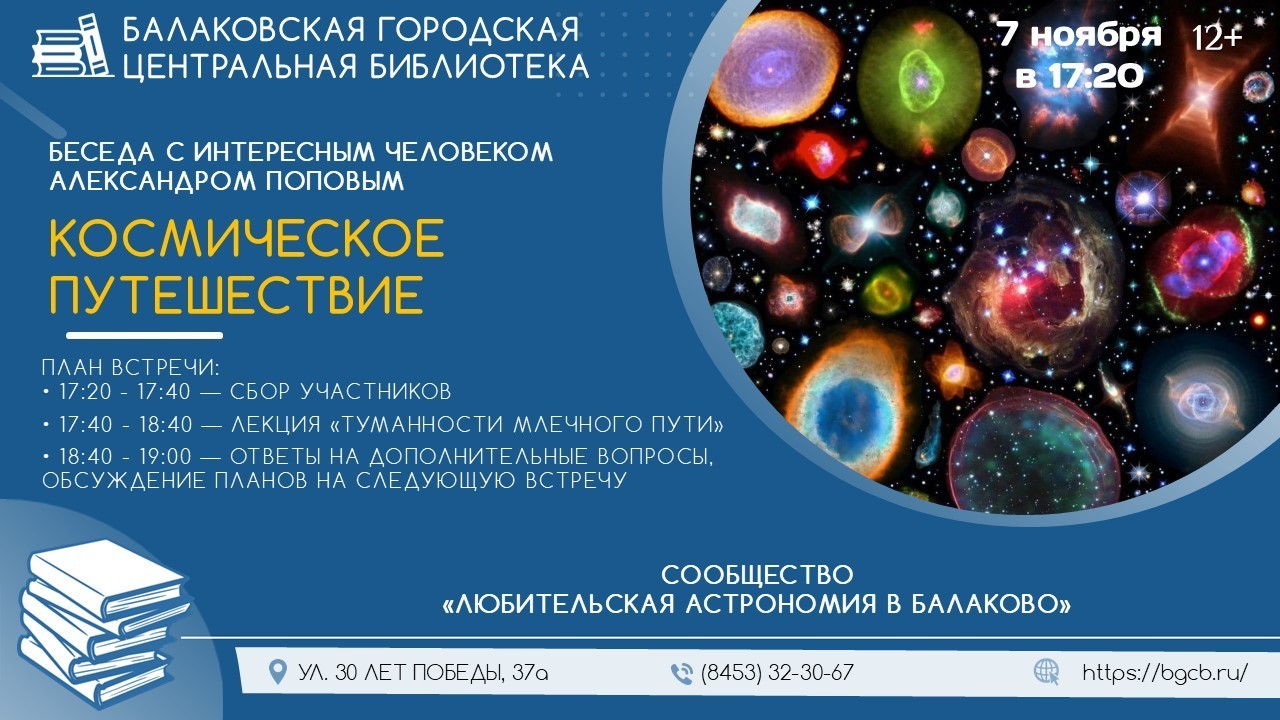 Афиша Балаковских любителей астрономии приглашают совершить увлекательное космическое путешествие 06.11.2025 08:54 3403