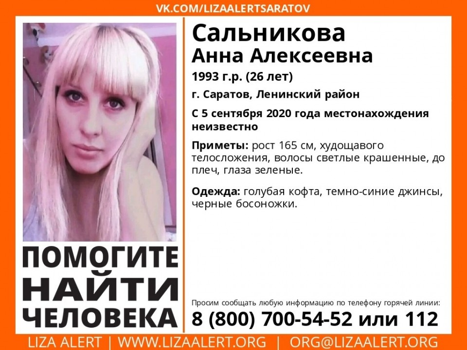 Новости Балаково Помогите найти. В Саратове пропала молодая блондинка с зелеными глазами 09.09.2020 09:41 6061