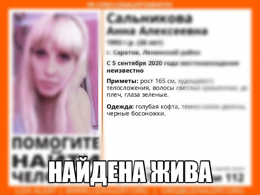 Новости Балаково В Саратове найдена зеленоглазая блондинка, которую искал отряд «Лиза Алерт» 10.09.2020 09:43 6532