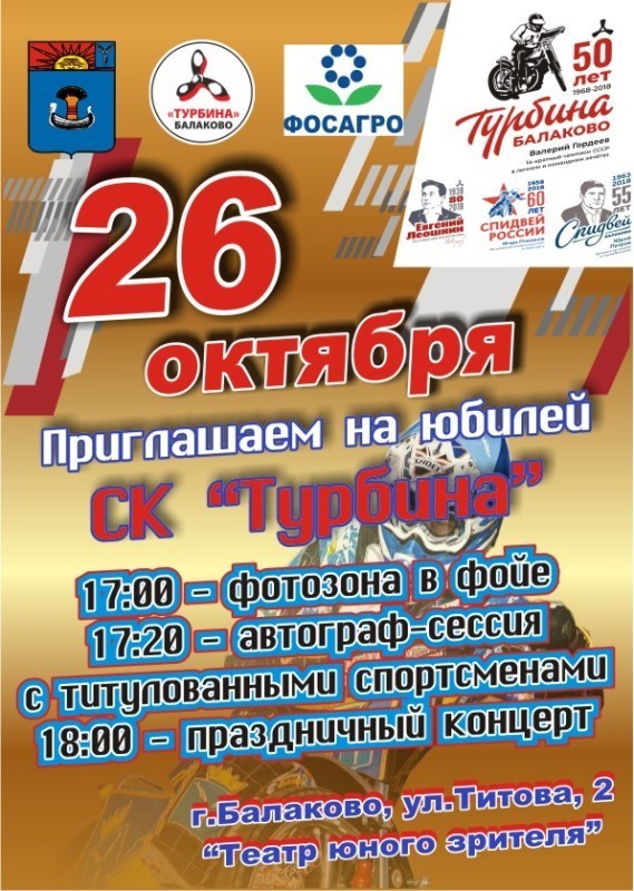 Новости Балаково Сегодня в Балаковском театре юного зрителя состоится торжественное мероприятие, посвященное празднованию 50-летия СК “Турбина” 26.10.2018 15:18 7458