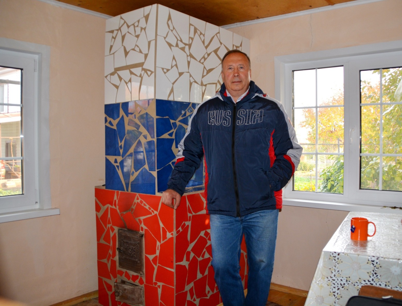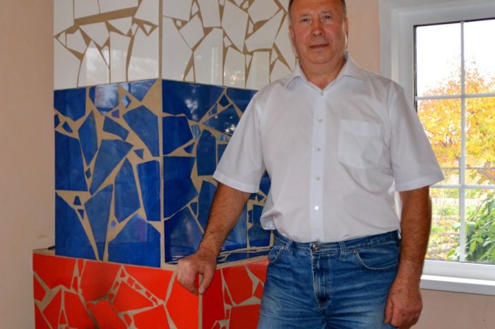 Саратовский поэт Евгений Запяткин завершил дачный сезон не только сбором жёлтых арбузов, но и неординарным строительным объектом. В своём дачном домике он выложил русскую печку, облицевав её битым кафелем трёх цветов – под флаг России – и назвал «Триколор».