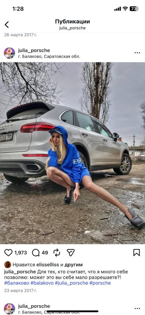 Многим балаковцам запомнились посты julii_PORSCHE с яркими фотографиями её красивой жизни и уничижающими высказываниями в адрес тех, кто живет не так красиво, как она.