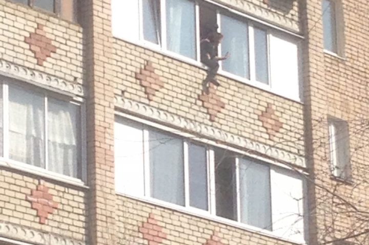 Нетрезвая женщина села на край окна лоджии, подвергая свою жизнь опасности