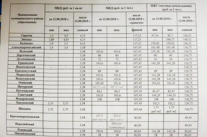 Незначительное снижение платы с одного жителя ИЖС, с 141,28 до 136,75 рубля ожидается в Вольском, Ершовском, Марксовском и Новоузенском районах. В Советском районе – с 144,29 до 136,75 рубля. Существенное снижение могут заметить жители Ровенского района – с 141,28 до 83,3 рубля.