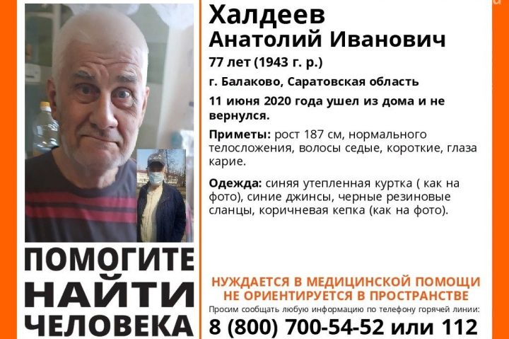 В городе Балаково разыскивают 77-летнего Анатолия Ивановича Халдеева.