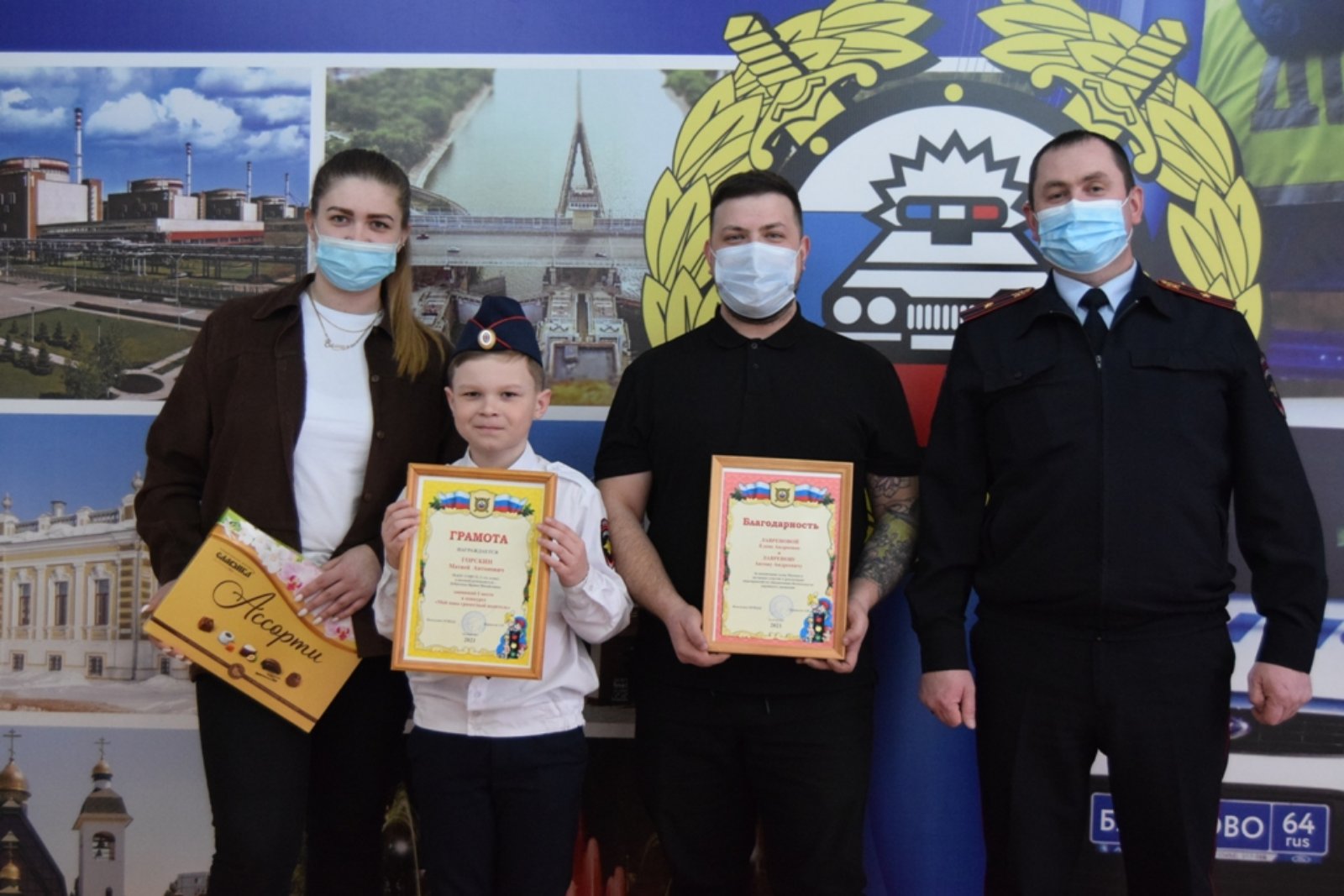 Начальник отдела ГИБДД МУ МВД России «Балаковское» майор полиции А.И. Корнилов вручил семье победителя грамоту и благодарственное письмо за участие в конкурсе и вклад в пропаганду безопасности дорожного движения.