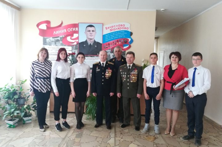 В ходе встречи ветераны рассказали обучающимся школы о своей биографии, о своей личной «линии огня» и об исполнении служебного долга. Гости рассказали ребятами, о том, каким должен быть сотрудник спецслужб и какими качествами он должен обладать. Стойкость, отвага, выносливость, сила воли и духа помогают спецназу выполнять сложные боевые задачи. Обучающимся был показан видеоряд сюжетов, отражающий специфику работы группы «Альфа». Все участники встречи почтили минутой молчания погибших в спецоперациях. Ребята гостям задавали вопросы о работе спецподразделения группы «Альфа».Ветераны спецслужб вместе с ребятами приняли участие в закладке аллеи памяти В. В. Малярова.