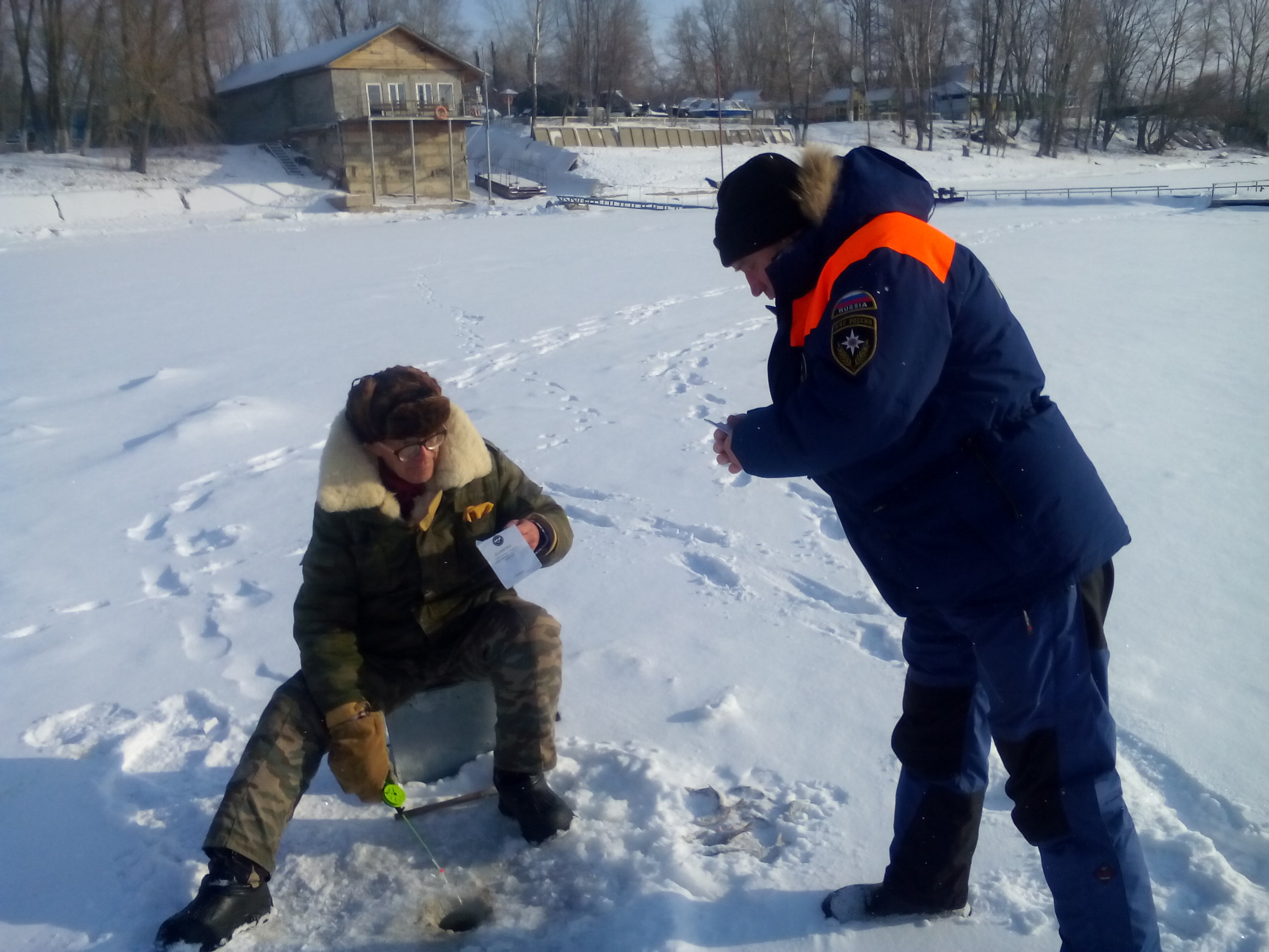 В ходе рейда с рыбаками проводились информационно-разъяснительные беседы по безопасному пребыванию на льду, а также по правилам оказания первой помощи людям, провалившимся под лед.