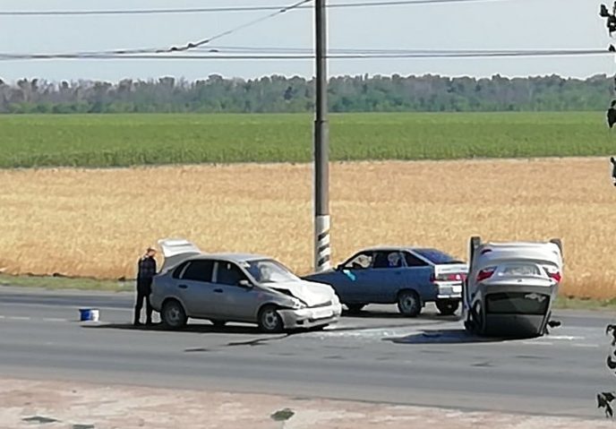 В Балакове в результате ДТП Hyundai оказалась на крыше