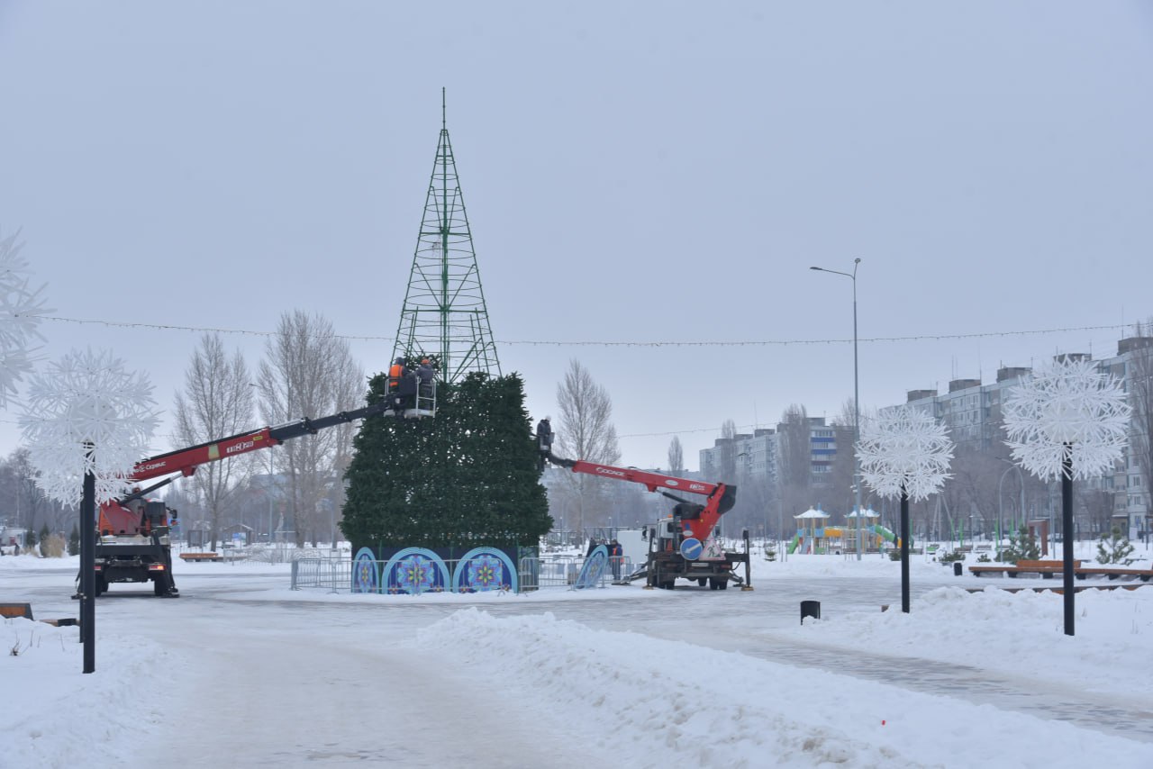 В балаковском парке «Центральный» разбирают главную городскую ёлку
