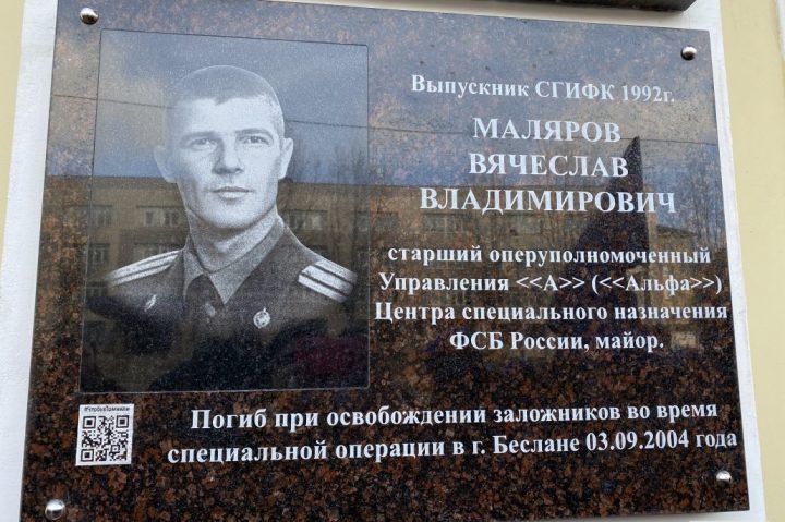 Сегодня, 12 марта, на здании Смоленской спортакадемии открыли мемориальную доску старшему оперуполномоченному группы «Альфа» Центра спецназначения ФСБ РФ Вячеславу Малярову, который погиб при освобождении заложников во время спецоперации в Беслане 3 сентября 2004 года.