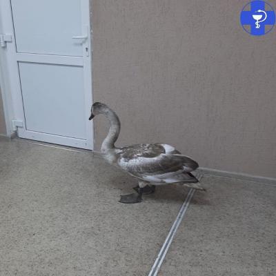 Молодого лебедя доставили в лечебницу со сложной сочетанной травмой грудной и брюшной полости. Врачи решили прооперировать птицу, извлекли костные осколки, обработали полости, заушили раны.