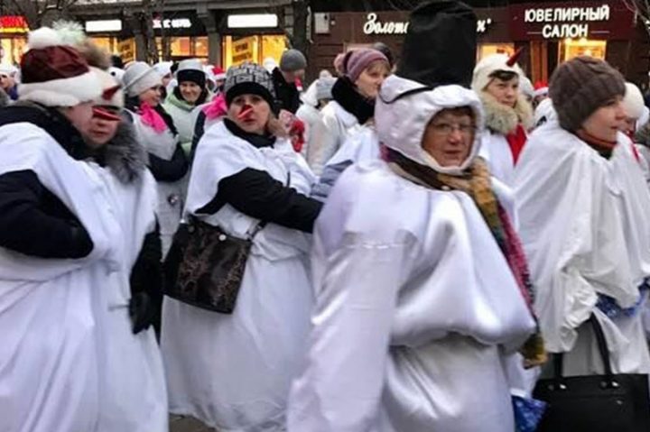 На снимке: саратовские педагоги встречают 2019 год в нарядах снеговиков