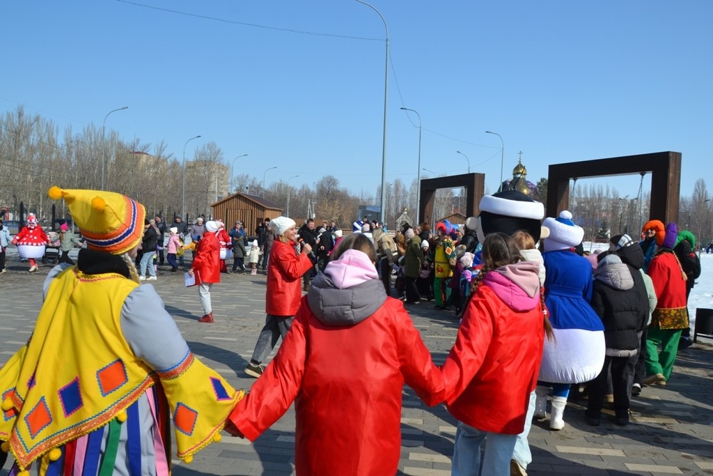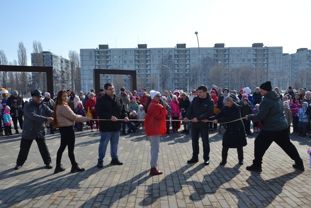 Не обошел стороной праздник и в этот весенний день. Центр «Ровесник» на площадке рядом с катком организовал танцы, конкурсы и даже хоровод! Юлия Тагирова, мама двоих малышей, наравне с мужчинами взялась за перетягивание каната!